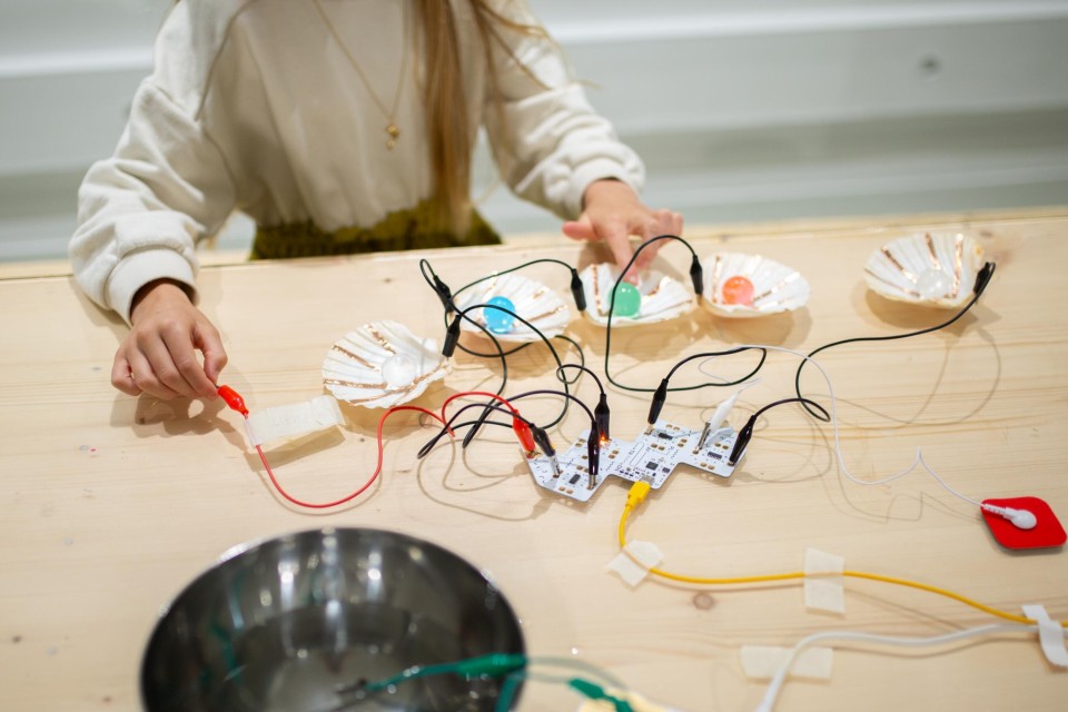 L’atelier se propose de former un orchestre du vivant à travers plusieurs phases de découverte et d’initiation musicale. Pensé comme un voyage sonore, le chemin débute par une phase d’écoute musicale et sa gestuelle faisant écho à nos représentations de la nature. La particularité de l’atelier réside dans l’hybridation des instruments proposés aux participants, mêlant synthèse du vivant et technologie. L’issue de cette activité est une performance musicale de leur propre création, avec pour seule consigne de copier le vivant en collaborant musicalement ensemble.