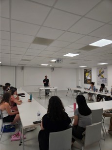 Lors de cette master class, l’artiste a ouvert un champ de réflexion autour de l’identité, thème central de sa démarche et point de départ d’une exploration sensible de notre rapport au monde. La séance s’est poursuivie par un atelier participatif mêlant introspection et jeu : à partir d’un travail sur les acronymes, chacun a été invité à se définir à l’instant T, expérimentant la fluidité d’une identité en mouvement, toujours à redéfinir.