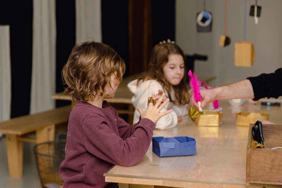 L’atelier, qui s’inscrit pleinement dans la filiation de la pratique de Louise Nevelson, invite les enfants à pénétrer dans un espace entièrement réinventé par Marine Chevanse, au moyen de rideaux en velours spécialement conçus pour le dispositif de l’atelier. Ils sont ensuite invités à sélectionner des rebuts et des chutes de matériaux mis à leur disposition dans une grande commode pour les transformer et concevoir leur propre objet ou jouet. Une façon d'expérimenter la création à partir de matériaux de récupération et en s'inspirant d’expérimentations existantes.